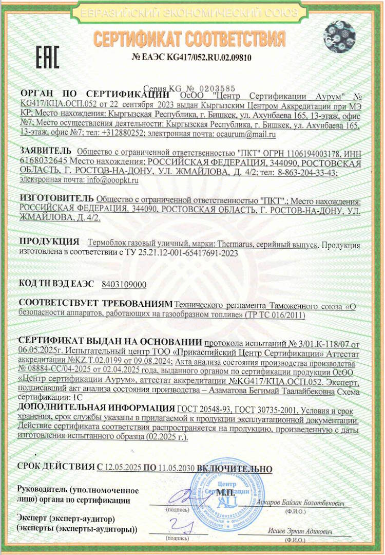 Претензий по качеству и срокам сдачи БМК Thermarus-1800 нет.